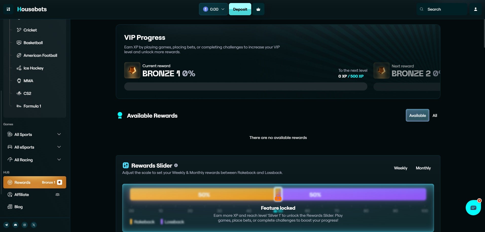 Players can contact customer support, showcase their level and perks on a different platform, and the House crypto sportsbook will give them a higher status. The platform also promises a “Rewards Slider” feature that allows players to adjust the scale between rakeback and lossback. In other words, it’s a unique VIP feature allowing you to customize bonuses based on your playstyle.