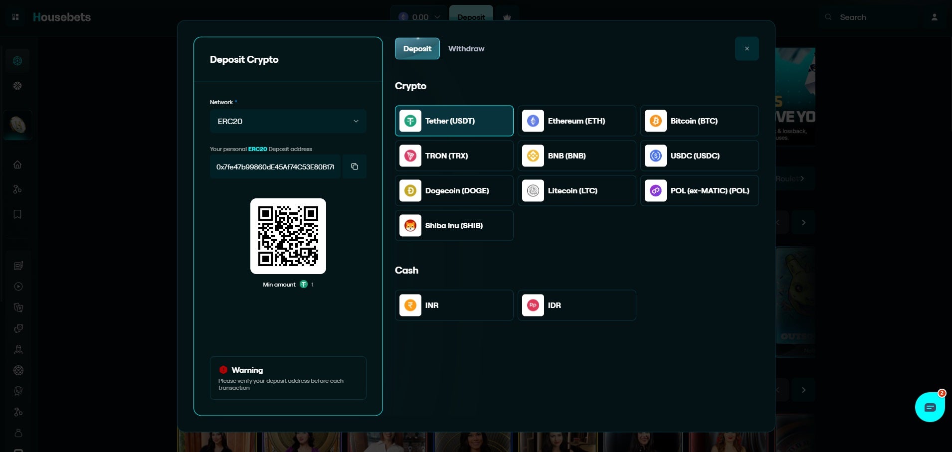 Housebets crypto withdrawals usually take 5 - 10 minutes on average, and you can check the status of the transaction on the withdrawal page. Each coin has its own minimum withdrawal limit, which you can check on the withdrawal page. For example, if you bet with Tron, the minimum withdrawal is 10 USDT, but the maximum is unlimited for all cryptos.